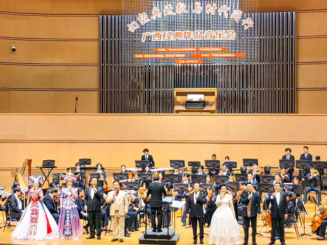 东谈主民网南宁12月20日电 (记者伍迁)向经典致意,壮好意思地面音韵悠长;与时期同业,八桂乐韵焕彩新章。12月19日晚,由广西壮族自治区体裁艺术界汇集中、广西音乐家协会主理,南宁市体裁艺术界汇集中、南宁市文化广电和旅游局等单元经办的“向经典致意 与时期同业”广西经典作品音乐会在南宁举行。