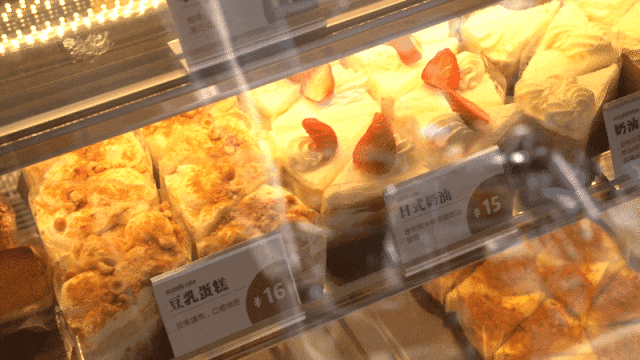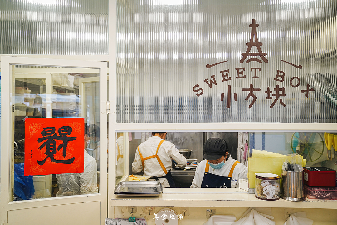 透过一个小窗口能看到师父们吃力的身影,小方块的甜点齐是24h现作念的,提议当日食用风范最好!