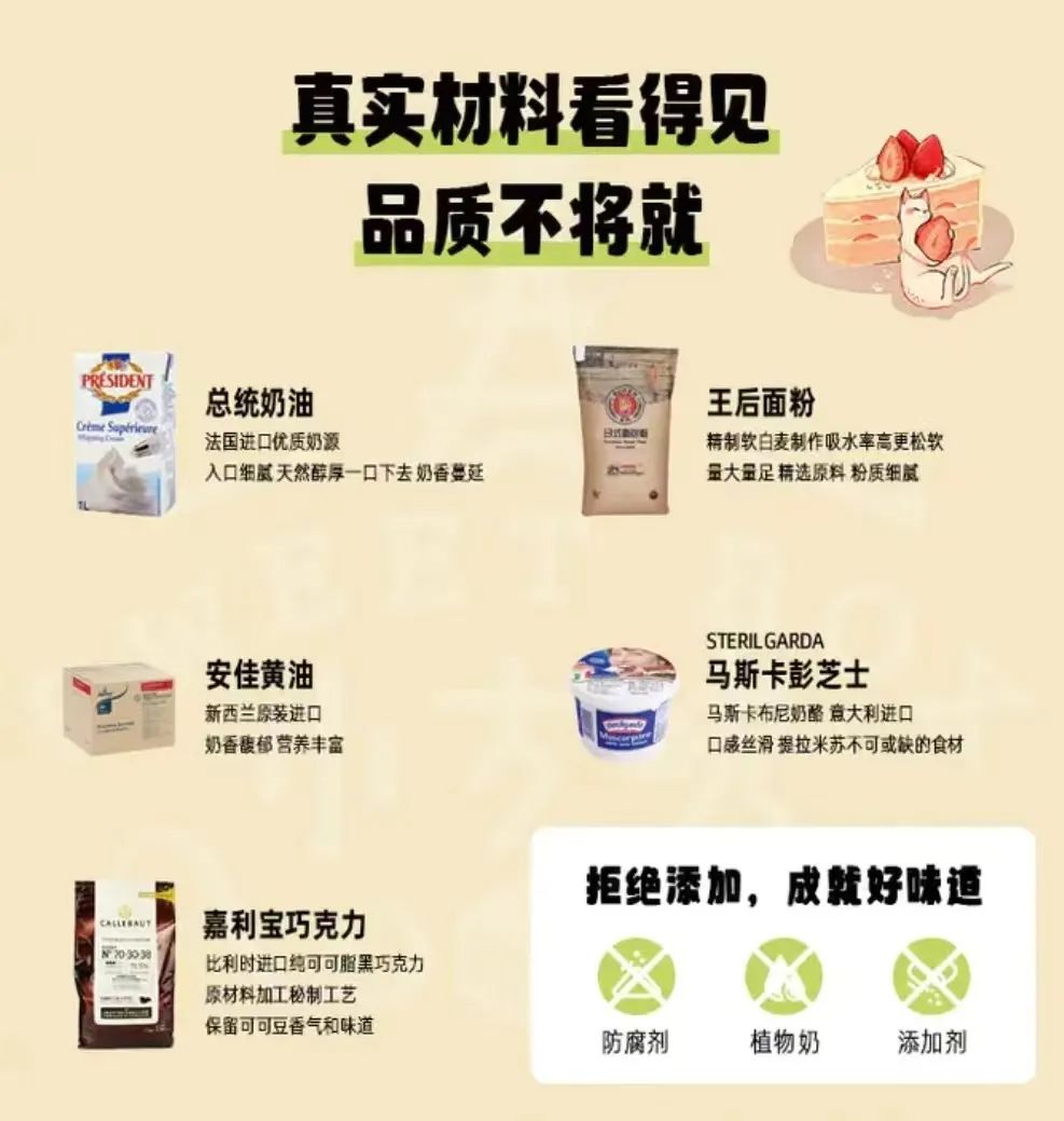 诚然低廉,但小方块的蛋糕用料少许齐不暗昧,小门径上便能看到采取的原材料品牌,懂行的东谈主一看就知谈安详得很,“货真价实”大要即是小方块能火这样多年的诀要!
