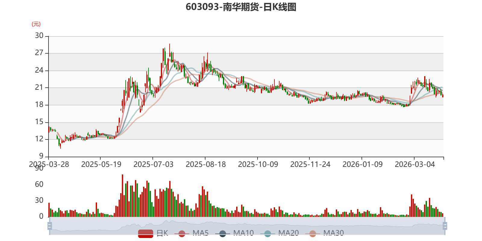 以3月27日收盘价计较,南华期货现在市盈率(TTM)约为29.17倍,市净率(LF)约2.53倍,市销率(TTM)约10.22倍。