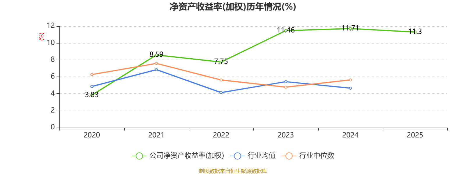数据露出,2025年公司加权平均净资产收益率为11.3%,较上年同时下落0.41个百分点。