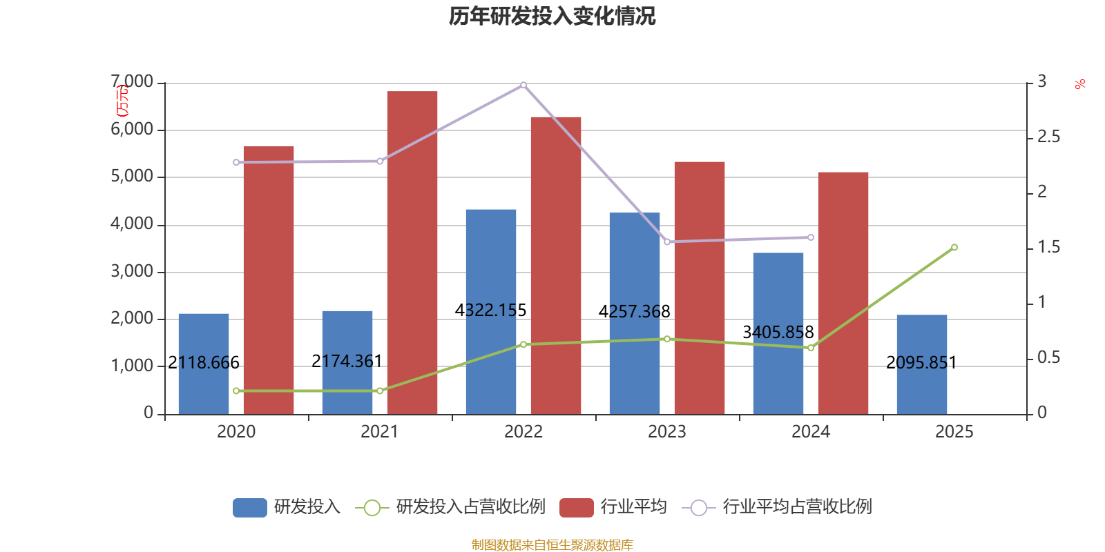 2025年全年,公司研发进入金额为2095.85万元,同比下落38.46%;研发进入占营业收入比例为1.51%,比拟上年同时高潮0.91个百分点。此外,公司全年研发进入成本化率为0%。