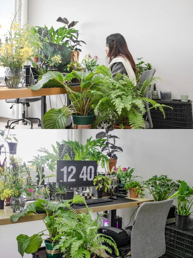 杭州的一位密斯,等于个爱花之东谈主,她的办公桌上摆满了多样盆栽。