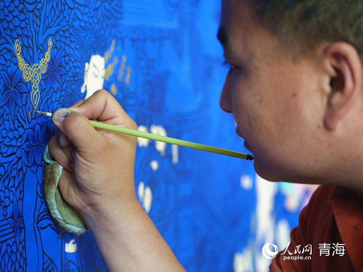 唐卡画师正在绘唐卡。东谈主民网记者 杨启红摄
