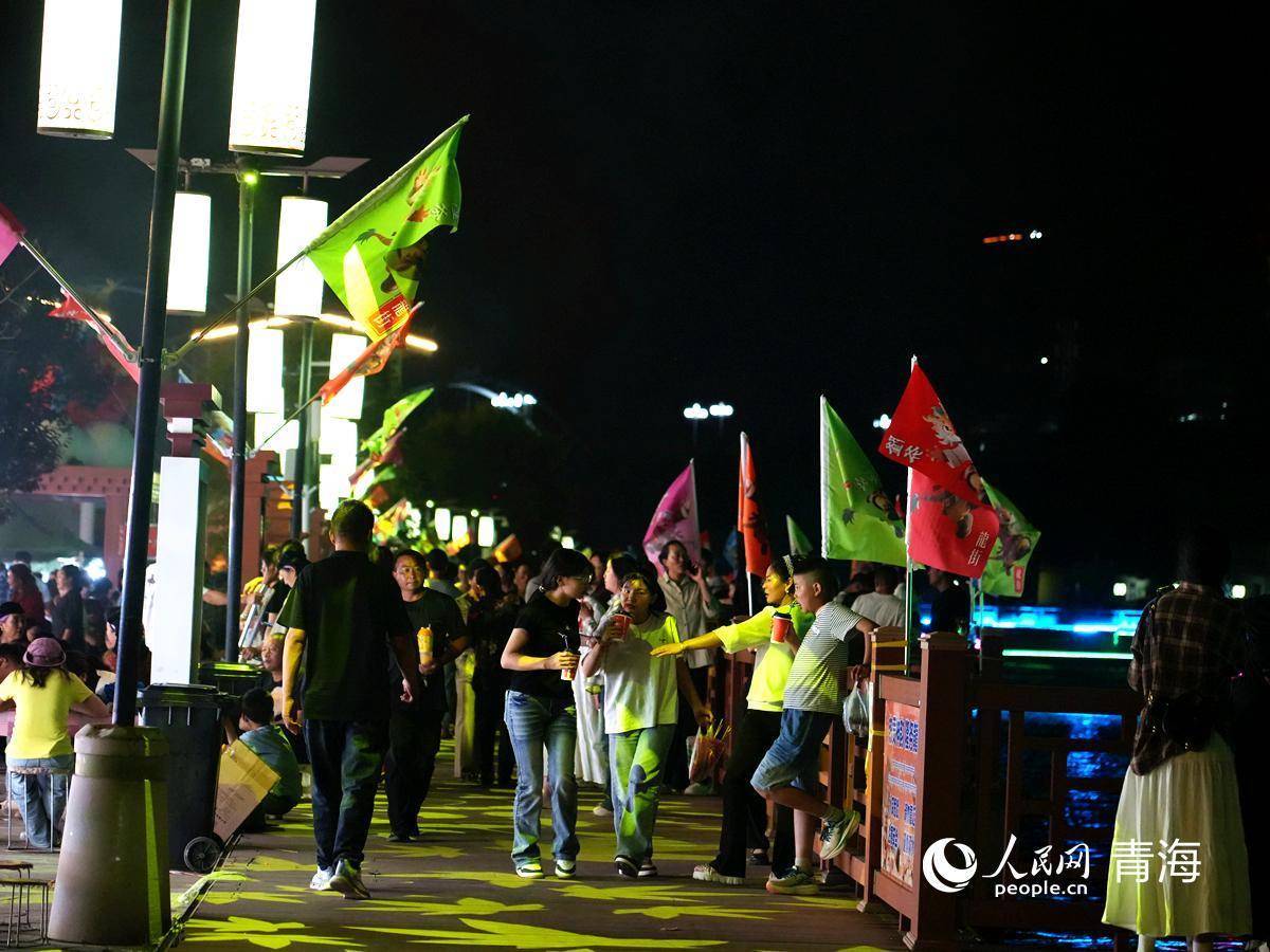 夏季夜晚,市民及搭客在隆务河滨漫步。东谈主民网记者 杨启红摄