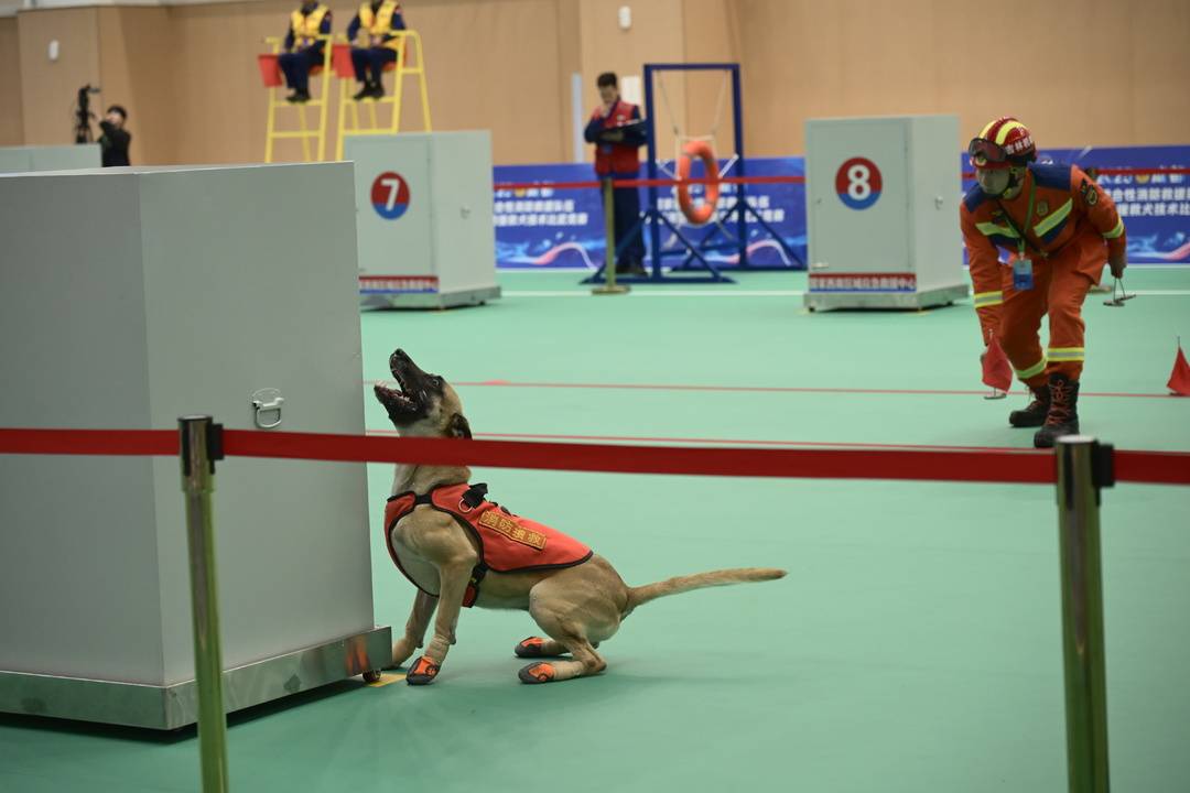 “汪、汪、汪......”10 月 24 日,在国度西南区域济急挽救中心,挽救犬“追风”站在藏有东说念主的箱体前,发出长达20秒的吠叫,是它向教师者发出的“人命信号”。这是国度概括性消防挽救队伍第八届消防搜救犬本领比武竞赛的现场,来自世界的 41 支代表队、410 名指战员,携 328 只搜救犬皆聚赛场,将在往时5 天的时辰里伸开热烈角逐。