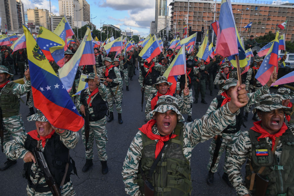 9月23日,在委内瑞拉皆门加拉加斯,民兵组织成员挥舞委内瑞拉国旗参加游行,反对好意思国在加勒比海域的军事恐吓。新华社发(马科斯·萨尔增加摄)